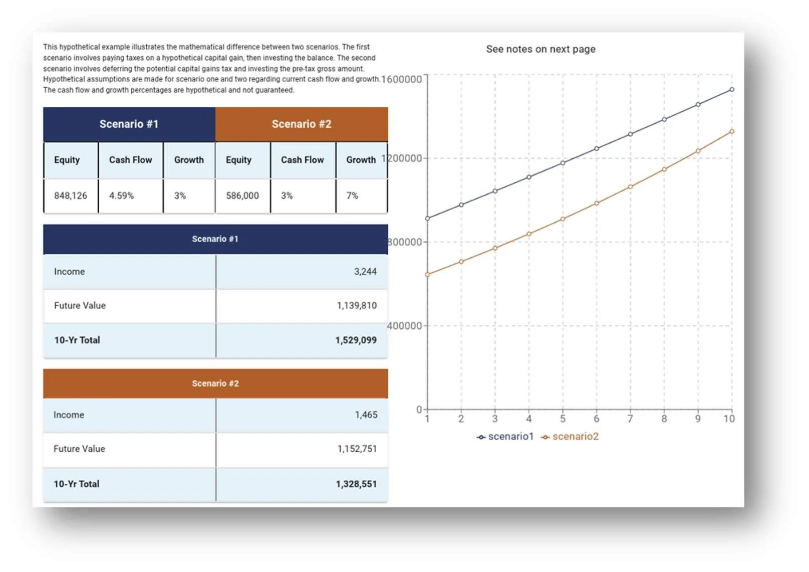 Some “financial advisors” will advocate for their clients to forego a 1031 exchange and invest their after-tax proceeds in Wall Street securities, with the premise that a stock portfolio will “make up the taxes”. This module provides a simple tool to check the math—often debunking the proposed rationale for incurring unnecessary taxes.